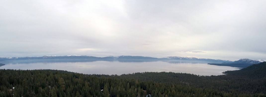 [mks_dropcap style=”circle” size=”52″ bg_color=”#dd9933″ txt_color=”#000000″]I[/mks_dropcap]Took one of my drones out today above the house and once I cleared the tree line here is what I saw. Now granted it was a bit of a cloudy day but after looking at the footage and photos I thought I would share this simple but tranquil photo I took. What your looking at is a view of Lake Tahoe close to Tahoe City and about 90 feet above where I was located looking towards the lake.
